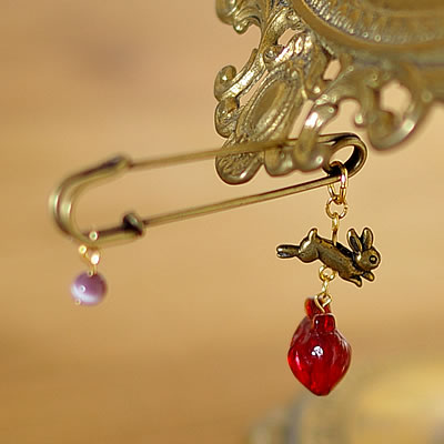 ウサギのチャームとリンゴのビーズがとっても可愛い可愛い“mignon”のブローチです!