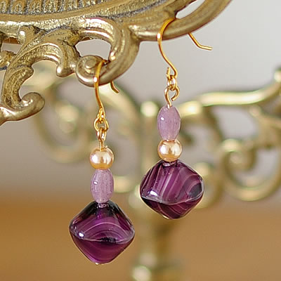 パープルのマーブルビーズとパールビーズの組み合わせがとってもエレガントなピアスです。左右ビーズの組み合わせが違う所がポイント。同デザインの“mignon”のネックレスもあります。