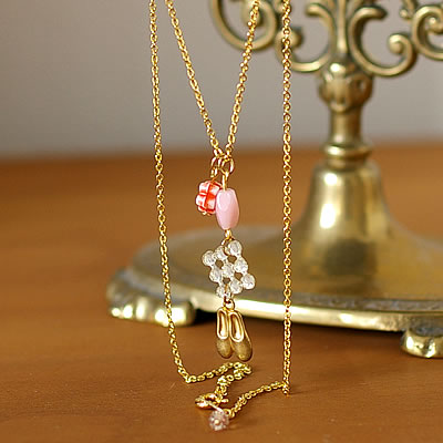 チャームの先端に付いたバレーシューズがとってもカワイイ素敵な“mignon”のネックレスです♪