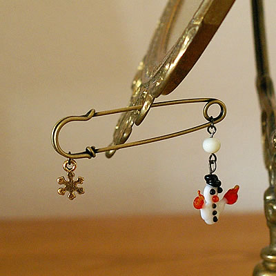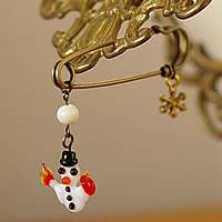 とっても可愛い雪ダルマが印象的な“mignon”のブローチです。アクセントの雪の結晶のパーツも素敵です♪