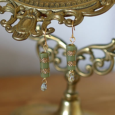 オリエンタルチックな円柱状のフランスビーズが素敵な“mignon”のピアスです。先端のビーズも素敵です♪