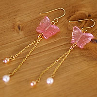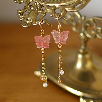 蝶のガラスビーズがとっても可愛い“mignon”のピアスです。春らしいピンク色のデザインが素敵です♪