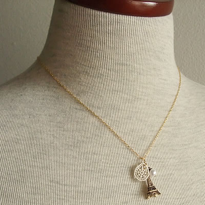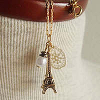 エッフェル塔のチャームとレースのアクセントがとっても可愛い“mignon”のネックレスです。