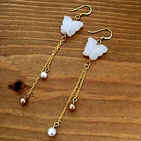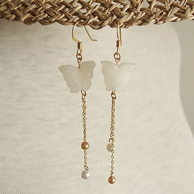 乳白色のガラス製の蝶々が印象的な、とっても素敵な“mignon”のピアスです。