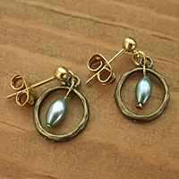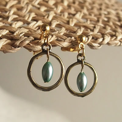 メタルのリングチャームとエメラルドグリーンのビーズの組み合わせがとっても素敵な“mignon”のピアスです。