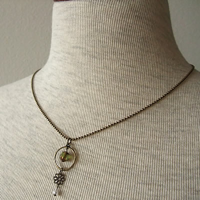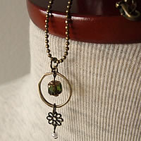 中央の素敵なグリーンビーズとフラワーパーツが印象的なとっても可愛い“mignon”のボールチェーンネックレスです。