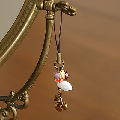 チェリーのチャームとプチビーズがとっても可愛い“mignon”のストラップです。