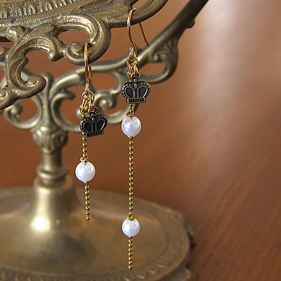 クラウンのチャームがとっても可愛い“mignon”のパールチェーンピアスです。同タイプのチェーンを使った“mignon”のネックレスもあります。