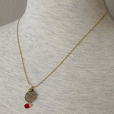 透かしプレートチャームが素敵な“mignon”のネックレスです。同デザインの“mignon”のピアスもあります。