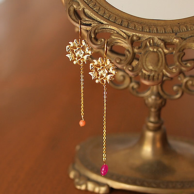 お花のパーツがとっても可愛いmignonの新作ピアスです。チャーム先端のビーズもキレイです♪