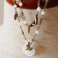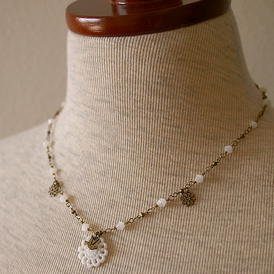 お花のパーツに重ねられたハトのチャームがとっても可愛いmignonの新作ビーズネックレスです。
