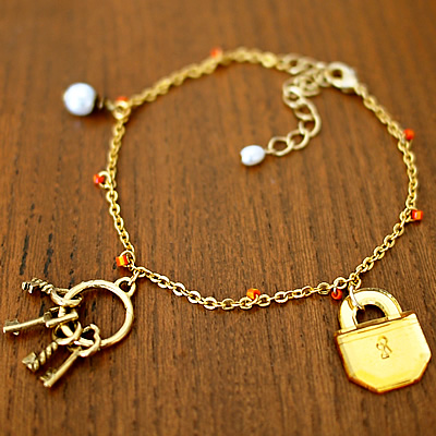 パドロック型のチャームと鍵チャームの組み合わせが取ってもかわいいmignonの新作ブレスレットです。