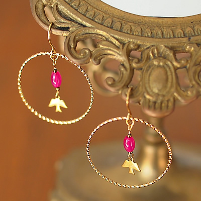 リングの中に揺れるハトのチャームがとってもかわいいmignonの新作ピアスです。