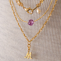 【M】のイニシャルチャームとパープルカラーのフランスビーズのアクセントがとっても可愛いmignonの新作2連ネックレスです。