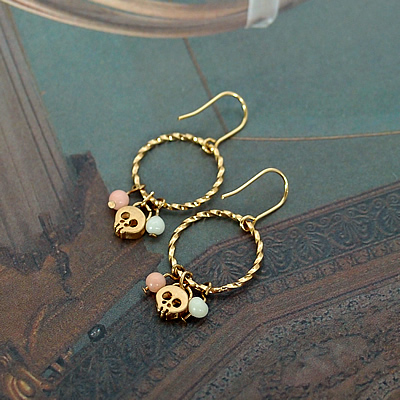 かわいいドクロのチャームとカラービーズがとってもかわいいmignonの新作ピアスです。