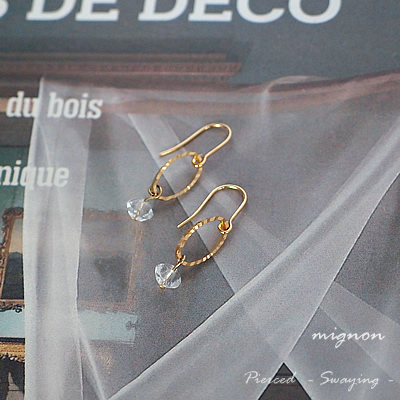 フランスのクリアビーズと、細かいカットが施された華奢なオーバルフレームがとってもかわいmignonの新作ピアスです。