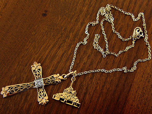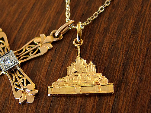 フランスの世界遺産「モンサンミッシェル」のお土産店で見つけた島全体をモチーフにしたチャーム(18金コーティング/3μ製)です。