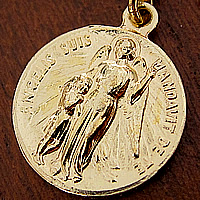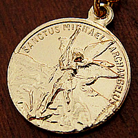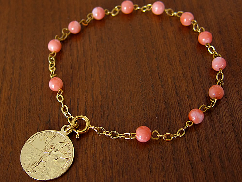 フランスの世界遺産「モンサンミッシェル」のお土産店で見つけた、大天使ミカエルのゴールドメダイが付いた、コーラル製ビーズの素敵なブレスレットです。