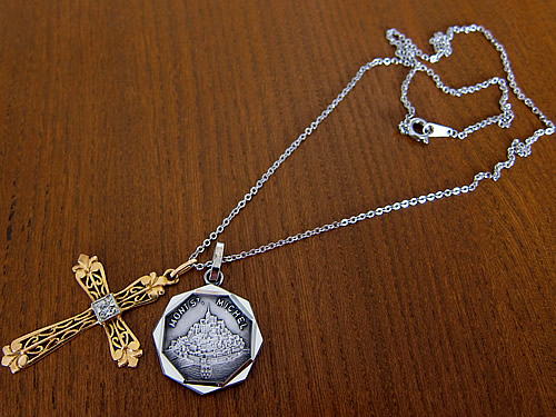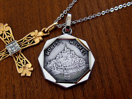 フランスの世界遺産「モンサンミッシェル」のお土産店で見つけた島全体をモチーフにした大きめのメダイです。