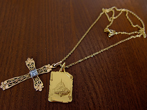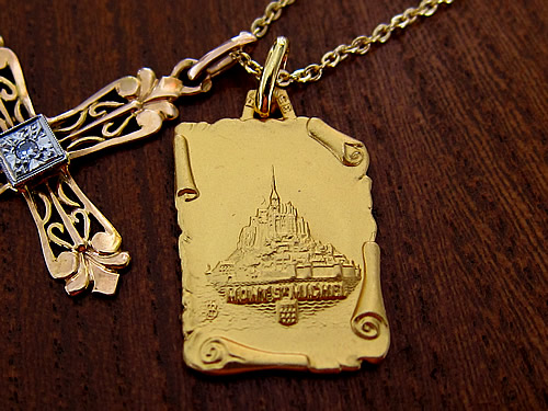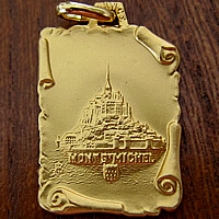 フランスの世界遺産「モンサンミッシェル」のお土産店で見つけた島全体が描かれたゴールドカラーのチャームです。
