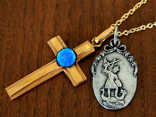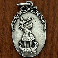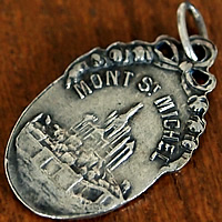 メダイに描かれている大天使ミカエル像と裏面のモンサンミッシェルの全景は、現在の形とは異なり、昔の聖ミカエル像とモンサンミッシェル(まだ小さい修道院)が描かれています。