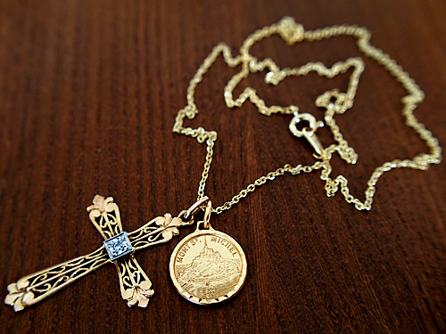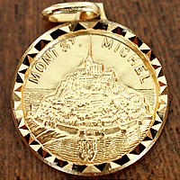 フランスの世界遺産「モンサンミッシェル」のお土産店で見つけた島全体をモチーフにしたゴールドカラー(合金製)のメダイ(16mm/20mm)です。