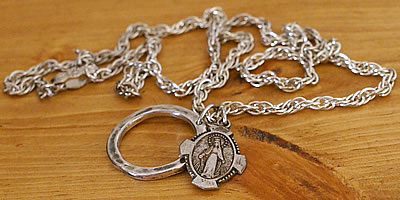 素敵な不思議のメダイのアンティークメダイと、ボリュームのあるアンティークチェーン、さらにオリジナルのシルバー925製のリングチャームをセットにした限定ネックレスセットです。