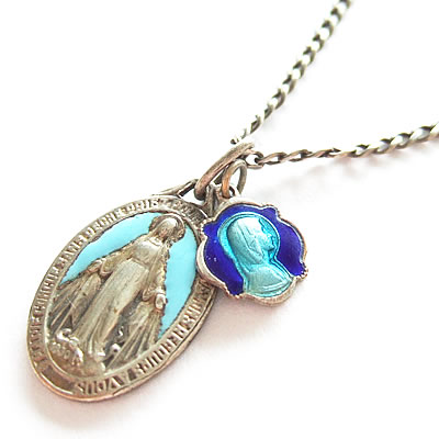 魅力あるアンティークチャームです。メダイのターコイズブルーがアクセントの素適なチャームです。色味のあるチャームと合わせると素適です。