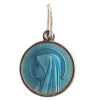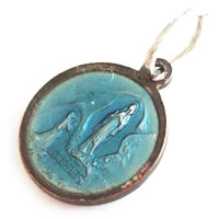 魅力あるブルーが印象的なアンティークチャームです。フレーム内のデザインがとてもキレイです。裏面には聖地LOURDES(ルルド)の刻印が入っています。
