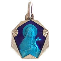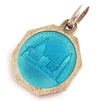 魅力あるアンティークチャームです。ブルーのカッティグがとてもキレイです。裏面には、LISIEUX の刻印が入っています。