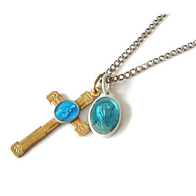 魅力ある1920年代のアンティーククロスチャームです。少しくすみのあるゴールドが魅力的です。クロス中央のブルーがポイント。コレクションの1つにいかがでしょうか。