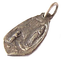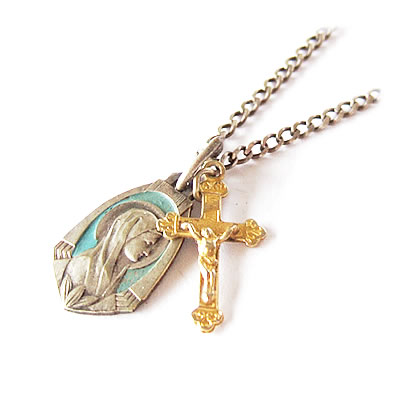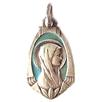 魅力ある1920年代のアンティークチャームです。背景のブルーがマリア様の顔を引き立たせていて、魅力的です。コレクションの1つにいかがでしょうか。