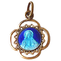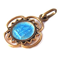 魅力ある1920年代のアンティークチャームです。背景のブルーがとても色鮮やかで、フラワーモチーフが素敵なチャームです。コレクションの1つにいかがでしょうか。