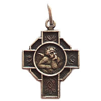 魅力あるアンティークチャームです。フレームのデザインがクロスの様になっていて素敵です。センターのエンジェルが頬杖をついていて、チャーミング!