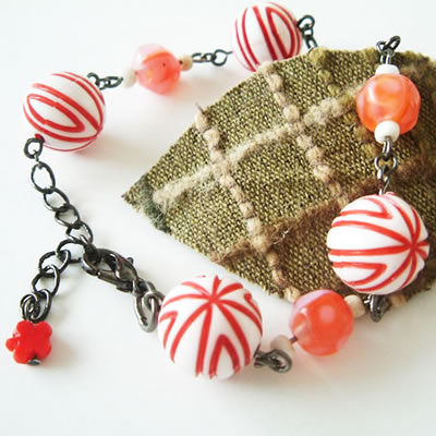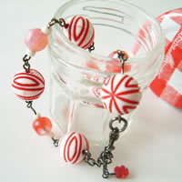 ドングリあめのような、フランスビーズをたくさん使用したお菓子のようなブレスです。アジャスターのトップに、四つ葉のクローバーを付けてみました。ピアスとセットで付けるとかわいさupです。