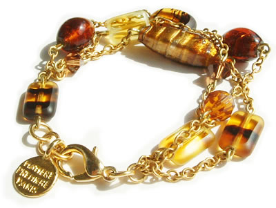 マレ界隈にあるフランスビーズアクセサリーショップ「Matiere Premiere」のオリジナルブレスレットです。アメ玉のようなキレイな大粒ビーズがたくさんついた3連ブレスレット。ゴールドのロゴプレートがポイント。BOX付なので、プレゼントにもオススメです。