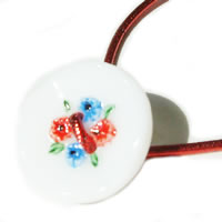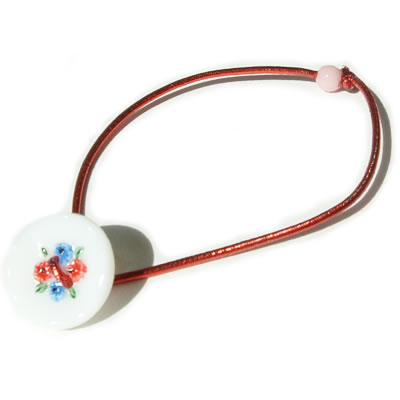 お花のアンティークボタンを使ったヘアゴムです。赤と青の小花がとってもカワイらしいです。