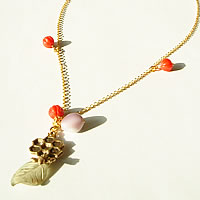 ミツバチチャームがとってもキュートなネックレスです。赤い実の様なアンティークビーズが、アクセントになっていてカワイイ♪