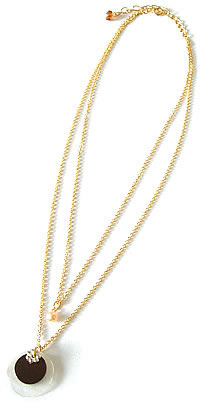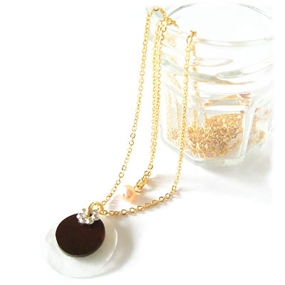 淡水パールと貝のアンティークビーズの2連ネックレスです。2枚重ねにした貝ビーズと淡水パールがエレガント。同デザインのピアスと一緒につけると素敵です。