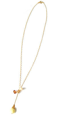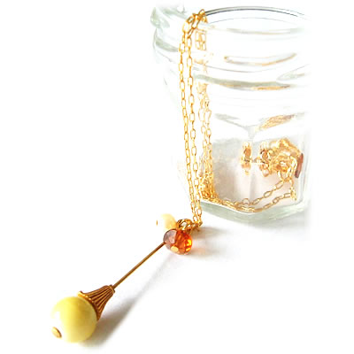レモン色のビーズにとんがり帽子がついたチャームネックレスが再入荷しました。ゆらゆらと揺れてカワイイです♪