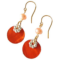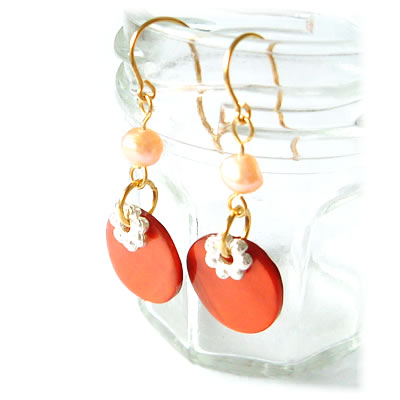 淡水パールがポイントの貝ビーズピアスです。同デザインのネックレスと一緒につけると、とっても素敵です。