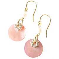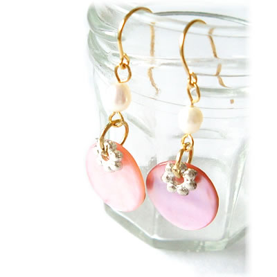 淡水パールがポイントの貝ビーズピアスです。同デザインのネックレスと一緒につけると、とっても素敵です。