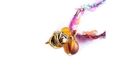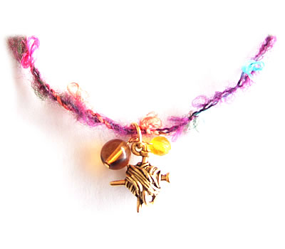 色鮮やかな毛糸にトップの毛糸玉チャームがついたとってもキュートなネックレスです。毛糸に毛糸のチャームというのがポイント♪ビーズと毛糸の色違いあり。