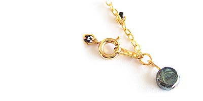 お日様のようなアンティークビーズがポイントのソレイユネックレスのお色違いです。ゴールドチェーンにプチビーズがたくさん散りばめられています。