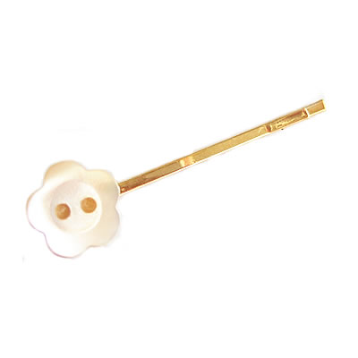 フラワーモチーフのアンティーク貝ボタンで作ったヘアピンです。小さなピンで可愛らしい♪