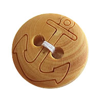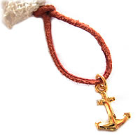 キュートなレースとボタンで作った☆チャーム付きブレスレットが再入荷しました。イカリの絵柄の木製ボタンがポイント♪同デザインで革紐の色違いがあります。