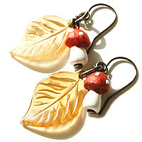 キノコのアンティークビーズがポイントのかわいいネックレスです。葉っぱとの組み合わせが秋をちょっぴり感じさせてくれます。mi-36のネックレスとおそろいでつけるとカワイサ倍増です♪