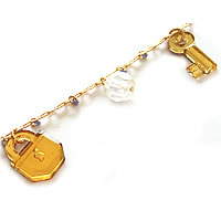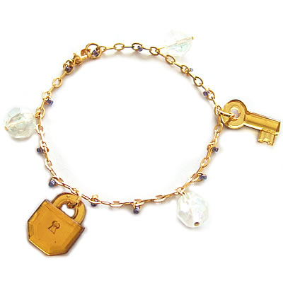 パドロック&キーのチャームがとってもキュートなブレスレットです。ゴールド基調なので、ちょっぴり上品な感じ。