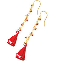 ヨットモチーフのカラフルなパーツを使って作ったピアスです。ヨットパーツは、アルミ板の上にガラスの粉を散りばめて焼いた日本でいう七宝焼の様な手法で作られています。フランスでは、「emaille a chaud」と言います。同デザインで色違いがあります。