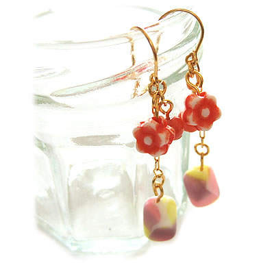 春らしいキュートな色のビーズで作ったピアスです。マーブルビーズがポイント!同デザインのネックレスと一緒に身につけるとカワイイです!